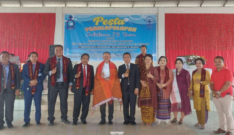 Deli Serdang, BMNews|Anggota Dewan Perwakilan Rakyat Republik Indonesia (DPR RI) Komisi XIII dari Fraksi Partai Golongan Karya (Golkar), Kombes Pol (Purn) Dr. Maruli Siahaan, S.H., M.H., menghadiri Pesta Perayaan Jubileum ke-75 HKBP Penara sekaligus meresmikan Gedung Sekolah Minggu HKBP Penara, Ressort Simpang Penara, Distrik XXIX Deli Serdang, Minggu (22/3).