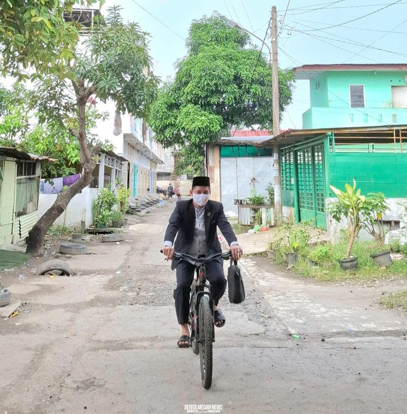 Di bawah terik matahari pagi, Ramlan mengayuh pedal sepedanya melintasi jalanan Medan Perjuangan yang padat. Setelan jas dan peci yang rapi berpadu kontras dengan sepeda gunung yang menjadi tunggangannya. Aksi ini bukan sekadar upaya mencari alternatif transportasi; ia adalah manifestasi nyata dari filosofi seorang pelayan masyarakat yang mengedepankan integritas dan komitmen prima.