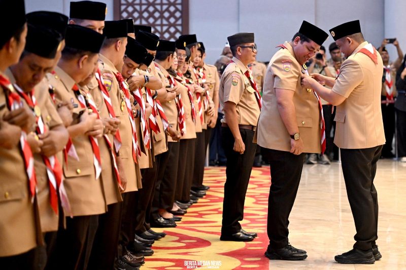 Medan, Beritamedannews.com — Gubernur Sumatera Utara (Sumut) Muhammad Bobby Afif Nasution menekankan bahwa Gerakan Pramuka memiliki peran strategis dalam upaya pencegahan dan pemberantasan narkoba di daerah. Pesan itu disampaikan Bobby saat melantik jajaran pengurus Kwartir Daerah (Kwarda) Sumut masa bakti 2025–2030 di Aula Raja Inal Siregar, Kantor Gubernur Sumut, Sabtu (22/11/2025).