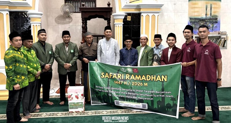 Deli Serdang, BMNews | Dewan Pimpinan Wilayah (DPW) Syarikat Islam Sumatera Utara berkolaborasi dengan Laznas Salam Sumatera Utara serta Dewan Pimpinan Cabang (DPC) Syarikat Islam Kabupaten Deli Serdang beserta organisasi serumpun menggelar kegiatan Safari Ramadhan 1447 Hijriah di Masjid Nurul Ihsan, Jalan Pajak Gambir, Kecamatan Percut Sei Tuan, Kabupaten Deli Serdang, Minggu (8/3/2026).