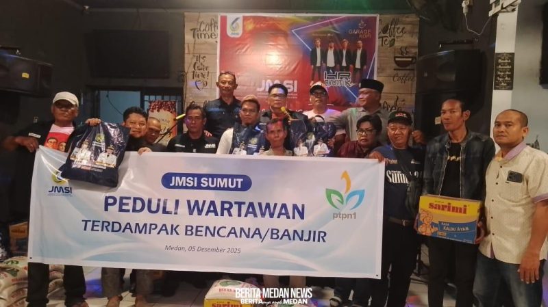 MEDAN, Beritamedannews.com — Jaringan Media Siber Indonesia (JMSI) Sumatera Utara menggelar “JMSI Celebration Night” di Garage Kopi, Jalan Sakti Lubis, Medan, Jumat malam (5/12/2025). Acara yang dimulai pukul 19.30 WIB ini menjadi wadah silaturahmi sekaligus gerakan donasi yang untuk membantu wartawan dan keluarga besar pers, masyarakat yang terdampak bencana Sumatera Utara terdampak.