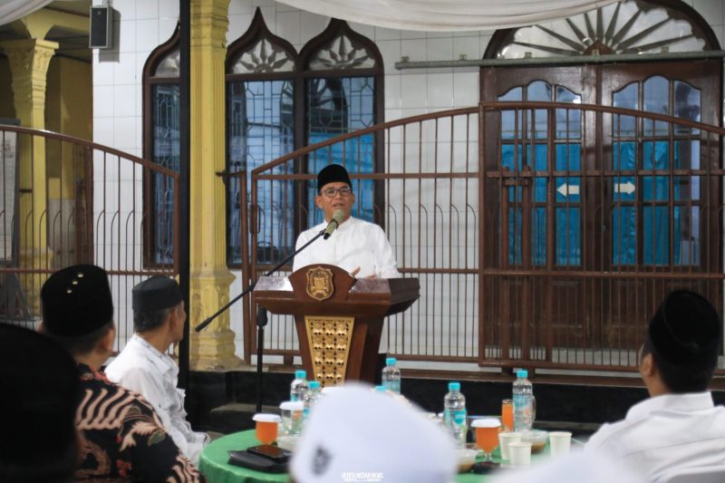 MEDAN, BMNews|Makmurkan dan manfaatkan masjid sebagai pusat syiar agama menjadi pesan yang disampaikan Wakil Wali Kota Medan H Zakiyuddin Harahap ketika melakukan Safari Ramadan di Masjid Taqwa, jalan Karya, Gang Purwosari, Karang Berombak, Medan Barat, Senin (9/3/26).